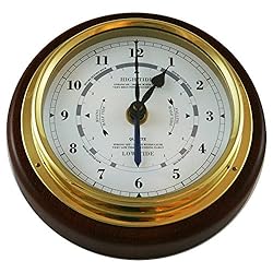 Ambient Weather 1434GU-22 Fischer Mahogany Wood and Brass Tide and Time Clock, 6-1/2″