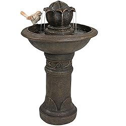 Sunnydaze Blooming Birdbath Outdoor Water Fountain with Bird Accent, 24 Inch