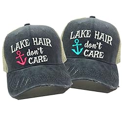 Women’s Custom Hat Lake Hair Don’t Care Distressed Trucker Ball Cap