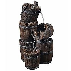 Peaktop Vintage Barrel 3 Tiered Floor Waterfall Fountain with Pump for Outdoor Patio Garden Backyard Decking, 28 Inch…