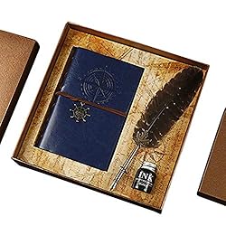 Quill Pen Feather Pen Set, GloDeals Calligraphy Pen Antique Writing Dip Pen Ink and Quill Set with the Ink in Bottle…