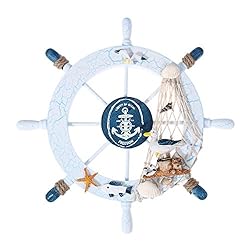 Rosenice Wooden Ship Wheel Nautical Boat Ship Wheel Wall Decor Dark Blue