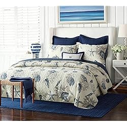 Newrara Seashell Beach Bedding Queen Beach Theme Quilt Set Beach Bedspread/Patchwork Quilt (Color2)