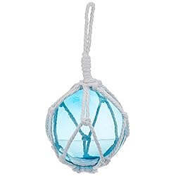 Hampton Nautical Light Blue Japanese Glass Ball Fishing Float with Brown Netting Decoration 3″