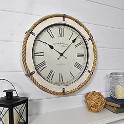 FirsTime & Co. Whitewashed Rope Wall Clock, 14″, Antique White