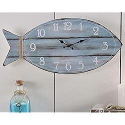 Giftcraft Fish Shaped Wall Clock in Distressed Ocean Blue Finish