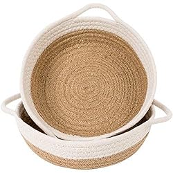 Goodpick 2pack Cotton Rope Basket – Woven Storage Basket – 9.8″ x 8.7″ x 2.8″ Small Rope Baskets for Kids Home Decor Toy Basket Organizer – Desk Basket Containers for Jewellery, Keys – Jute Rope Bowl