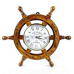 Nautical Handcrafted Wooden Premium Wall Decor Wooden Clock Ship Wheels | Pirate’s Accent | Maritime Decorative Time’s…