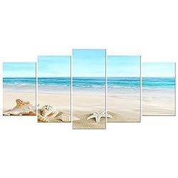 Pyradecor Seashell 5 panels Seascape Canvas Prints Landscape Pictures Paintings Modern Stretched Canvas Wall Art Sea…
