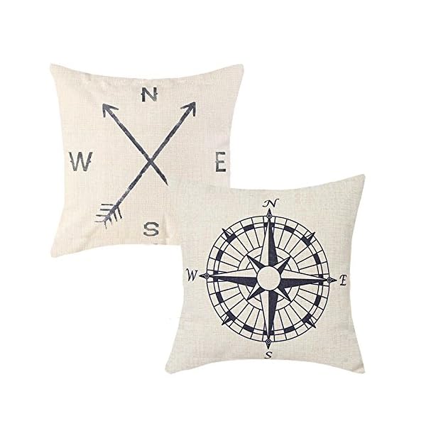 Anickal Set of 2 Summer Decorations Nautical Arrow Compass Decorative Throw Pillow Covers Cotton Linen Pillow Cases 18 x 18 for Summer Home Decor