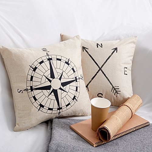 New living room series set of 2, nautical arrow compass decorative throw pillow covers, a perfect item for home and sofa decor, also a super cute gift for your family and friends.
