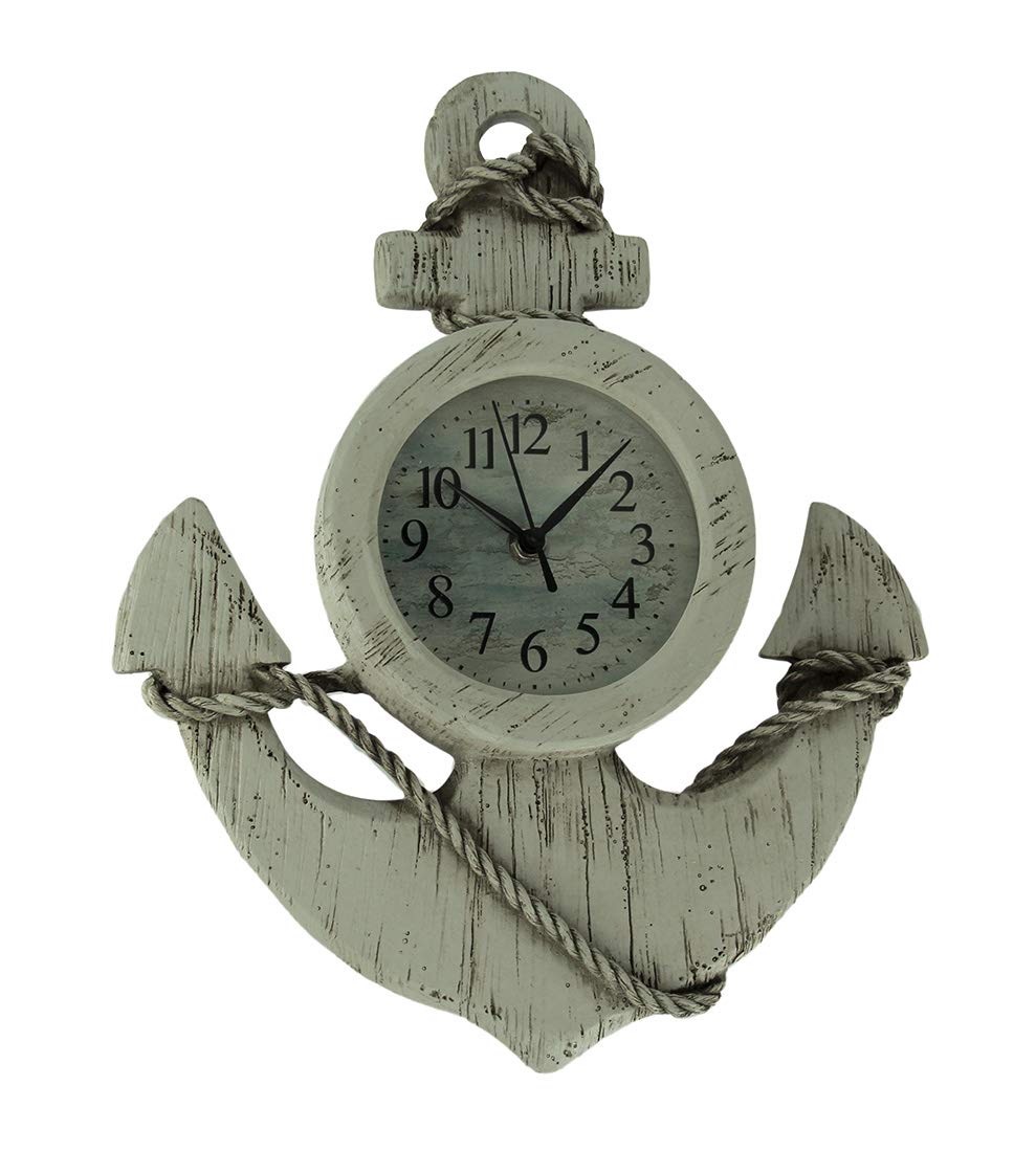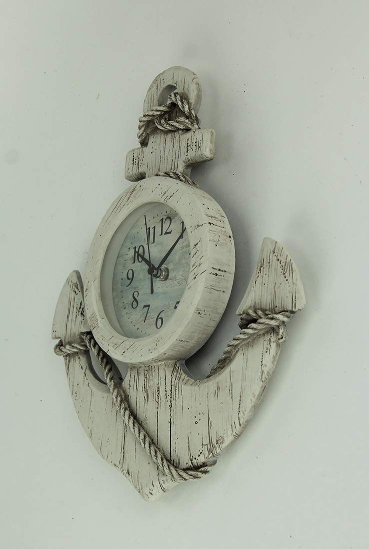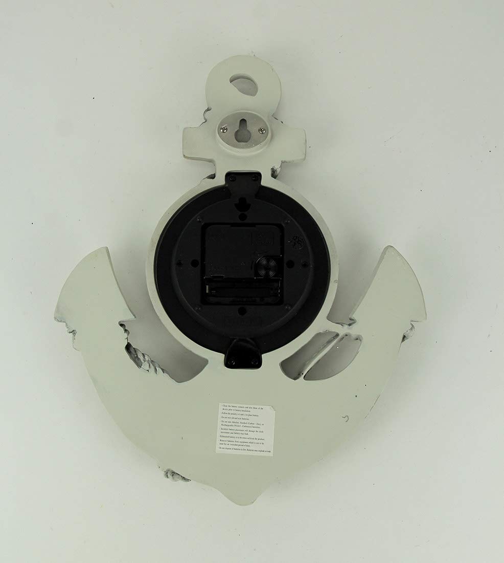 thirteen” Quartz analog Anchor wall clock, blue dial, rope accents and Distressed White Washed Resin end.