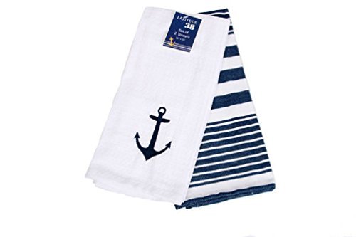 Woven & Embroidered Cotton Dishtowels Show off your nautical taste with this embroidered dishtowel set! Cotton dishtowels function embroidered anchor and striped designs. Set of 2. Military and white.