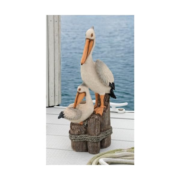 Design Toscano Coastal Decor Ocean’s Perch Pelicans Garden Bird Statue, 24 Inch, Polyresin, Full Color