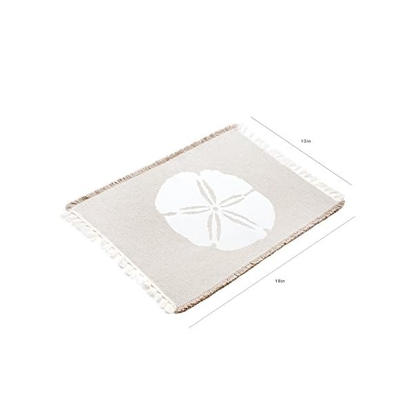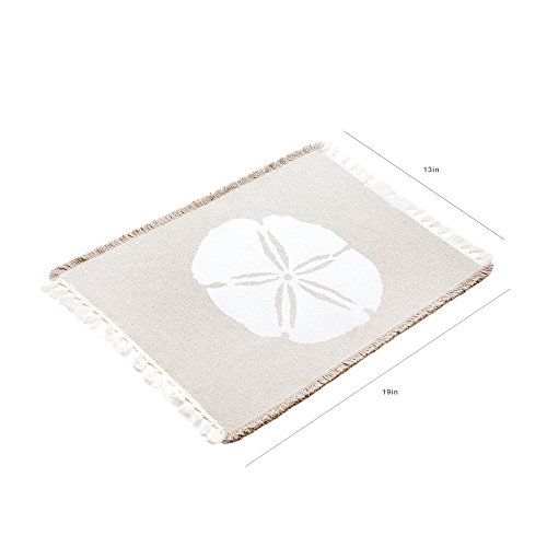 Living Fashions Table Placemats Set of 4 – Beach Themed Nautical Kitchen Placemats for Dining Table – 100% Washable Cotton Place Mat- Seashell, Sand Dollar, Starfish & Anchor Designs with Fringes