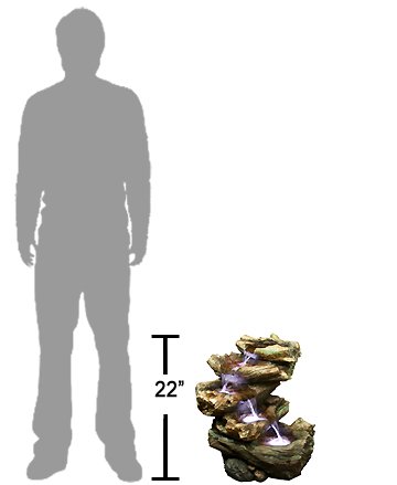 Included is a quiet, powerful, adjustable-waft submersible water pump, combined with cool LEDs, that plugs into any regular single electrical outlet. Simply attach the easy-to-set up pump, fill the basin with water and plug it in to enjoy the serenity of cascading waterfalls.