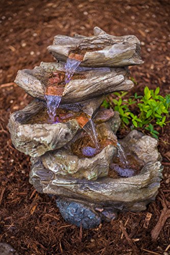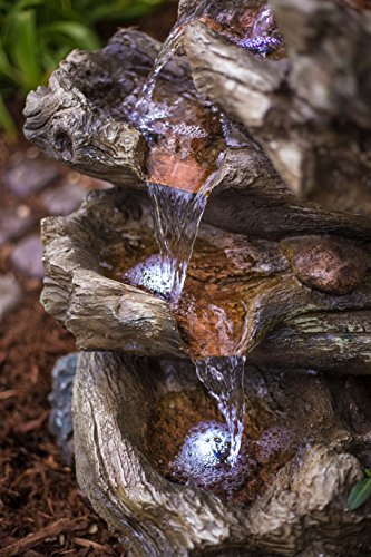 Meadow Log Fountain – Cascading Waterfall Garden Fountain with LED Lights. Realistic Water Feature with Low Splash Design. Pump Included.