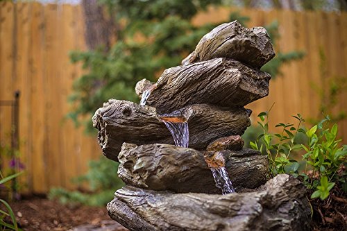 The intriguing Meadow Log Fountain features a multi-tiered, low splash, cascading waterfall that is beautifully lit by cool LED lights. The magic of this soothing fountain is the true-replica, moss enhanced logs, strikingly stacked upon one another providing a gentle meander for the trickling stream. Enjoy listening to the wholesome natural sounds of softly flowing water.