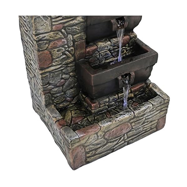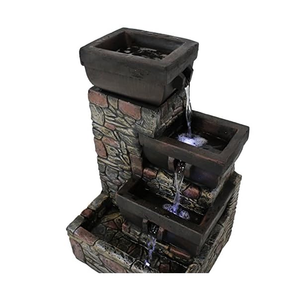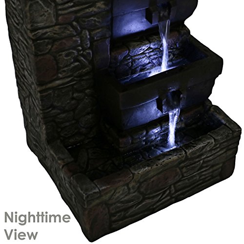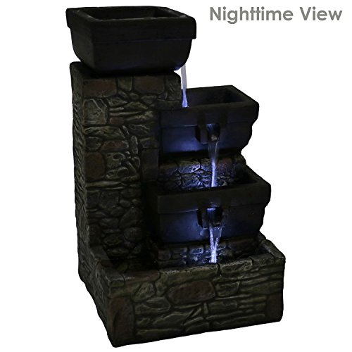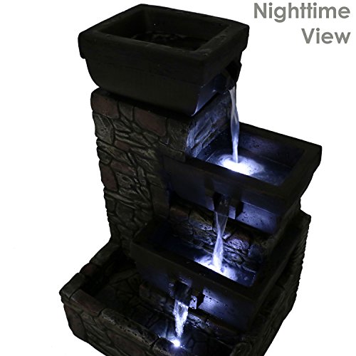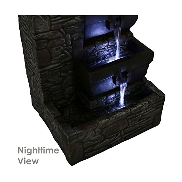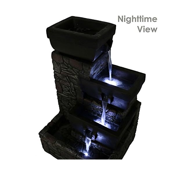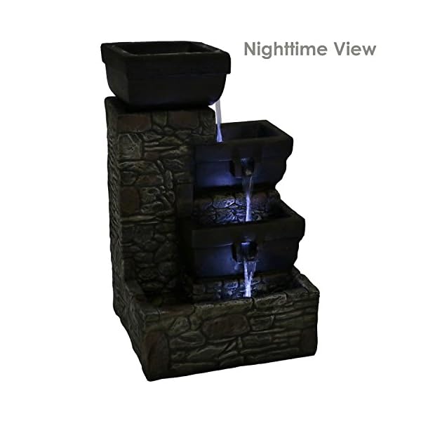 ENJOY AT NIGHT: Two lower tiers and bottom basin feature built-in LED lights to illuminate the flowing water; Light is a bright, white color