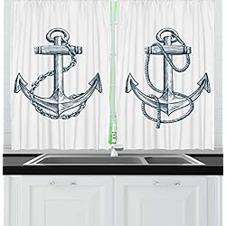 Ambesonne Anchor Kitchen Curtains, Vintage Sketch Nautical Element Ship Sailing Travel Theme Chain, Window Drapes 2…