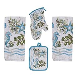 4 Piece Ocean Tide Kitchen Bundle / Set – 2 Terry Towels, Oven Mitt, Potholder