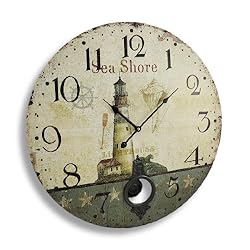 Antique Finish Seashore Lighthouse Wall Clock with Pendulum 23 in.