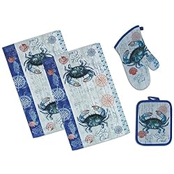 4 Piece Blue Crab Crabfest Kitchen Set – 2 Terry Towels, Oven Mitt, Potholder
