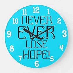 Never Ever Lose Hope Fun Inspirational Modern Simple Wooden Wall Clock Silent Non-Ticking Clock for Living Room Home Office 12 Inches