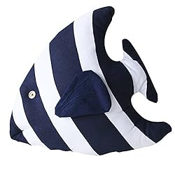 Ozzptuu Decorative Throw Pillow Cute Tropical Striped Fish Shaped Nautical Pillows for Sofa Couch (Blue)